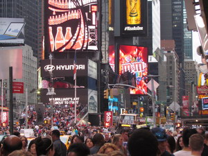 (The crossroads of the world) is famous for its electric, neon and illuminated signs, the brightly illuminated hub of the Broadway Theater District.
