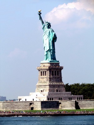 is a sculpture on Liberty Island in the middle of New York Harbor, in Manhattan, New York City. |